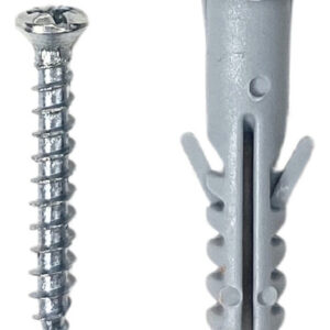 TARUGO CON TOPE Y TORNILLOS 6 MM X100 UNIDADES= Características: – Fácil instalación y ajuste perfecto. – Sus alas o extensiones permiten ajustarlo/fijarlos con mayor seguridad. – Ideal para ladrillo, paredes, o bloques de cemento. – Tornillo de tipo cruz. – Perfecto para construcciones. – Protección contra el giro del tarugo al girar el tornillo.
